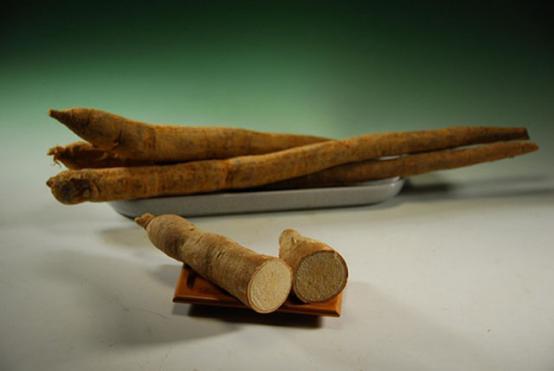 【药材性状】:块根圆柱状或几个纺锤状体连成一串,,,浅黄色或土黄色,,,稍粗糙,,有环纹。。。商品多为切成长4~9厘米,,,宽2~3厘米、、、、厚约0.5~1厘米的块片。。。。横切面皮部近白色,,其内侧为一层不很明显的棕色环纹,,,,中间部分近白色,,,,粉质,,略疏松。。。老根近木质,,,坚韧,,,,嫩根质脆,,易折断。。气微,,味微甜。。。以片大、、色白、、粉质、、味甜者为佳。。